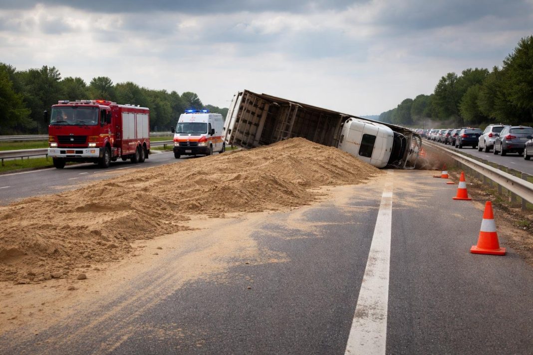 GIURGIU: Accident pe A1 la KM 35, Căscioarele – un pasager RĂNIT, transportat la SPITAL
